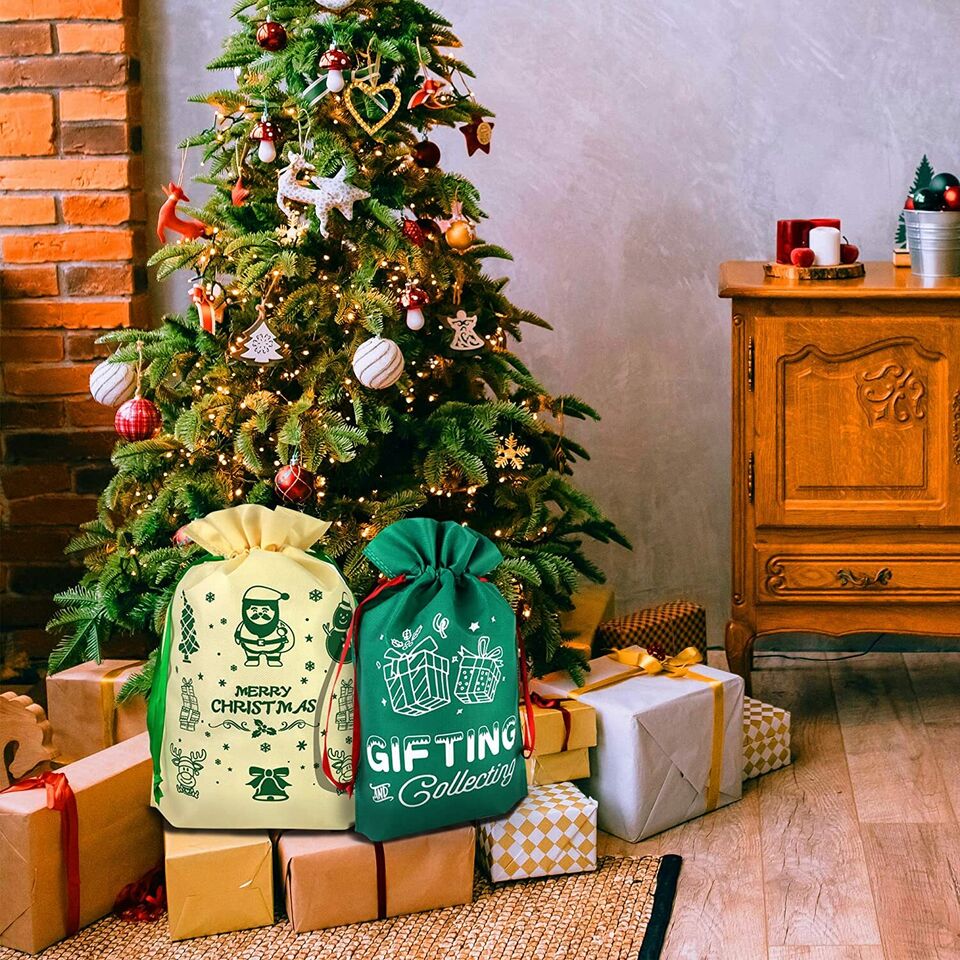 12 Pcs Santa Sacks Assorted Christmas Bag with Draw Strings Non Woven 12 Designs