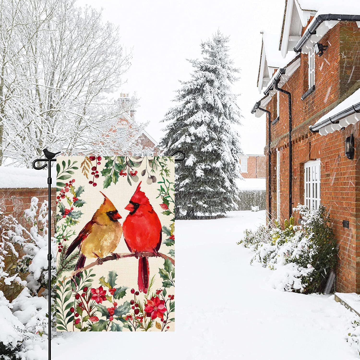 12x18 Inch Double Sided Vertical Xmas Rustic Farmhouse Yard Seasonal Holiday Outdoor Decoration, Cardinal