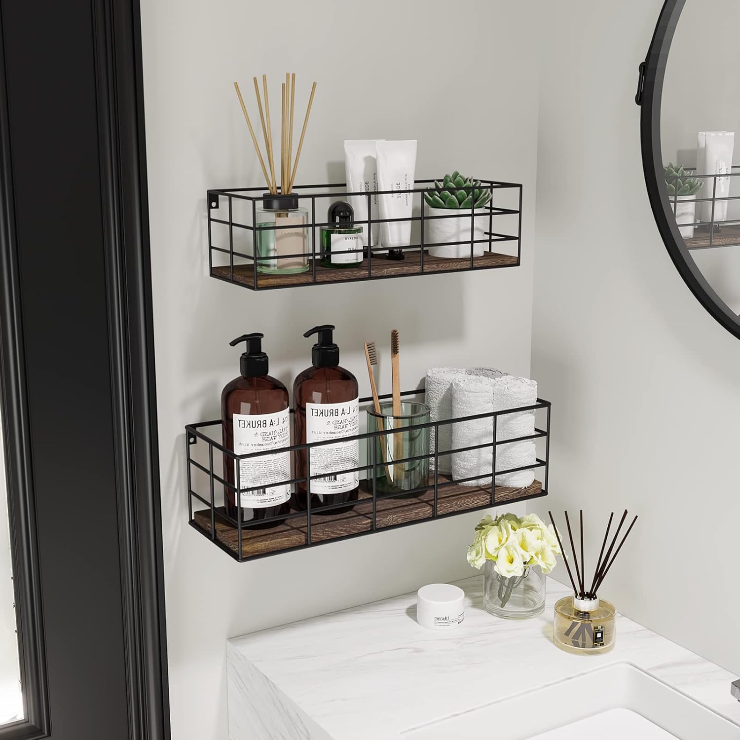2 Sets of Wall Mounted Shelves for Wall Storage, Hanging Storage Shelf (Brown)