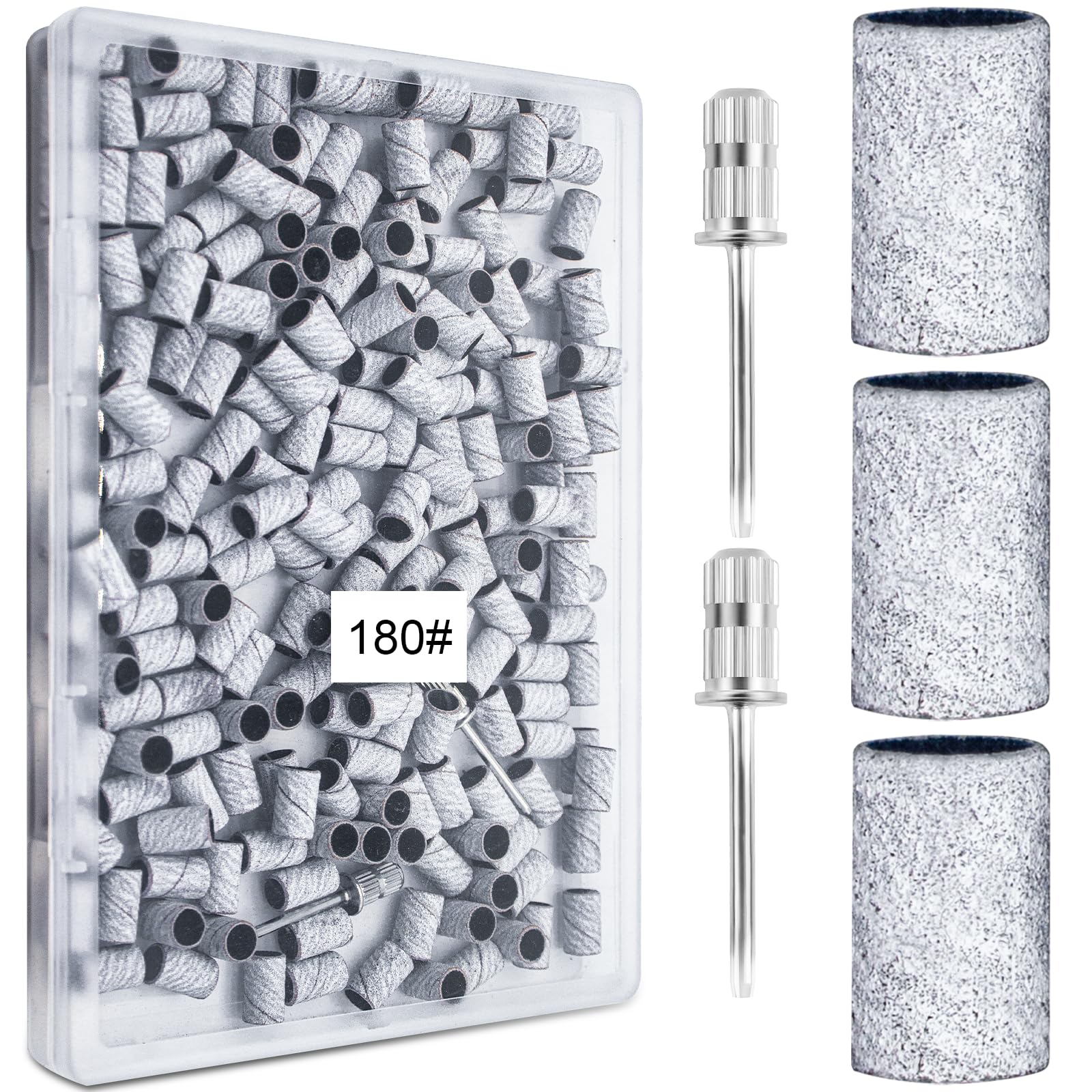 - ❤️180GRIT NAILS SANDING BAND - You will get 200pcs 180grit zebra sanding bands and 2pcs sanding bit for nail drill. 3/32” Mandrel bits for electric nail drill are fit for most nail drill. The fine grit sanding bands & mandrel bit is a must have for any nail technician or beginners.