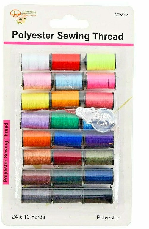24 Spools Polyester Sewing Thread with 24 Assorted Color Threads (10 Yards)