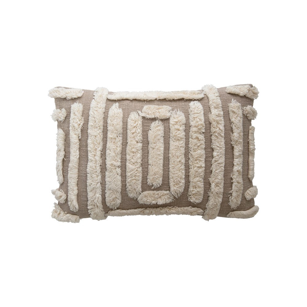 24"L x 16"H Woven Cotton Lumbar Pillow with Tufted Design, Tan & Cream Color