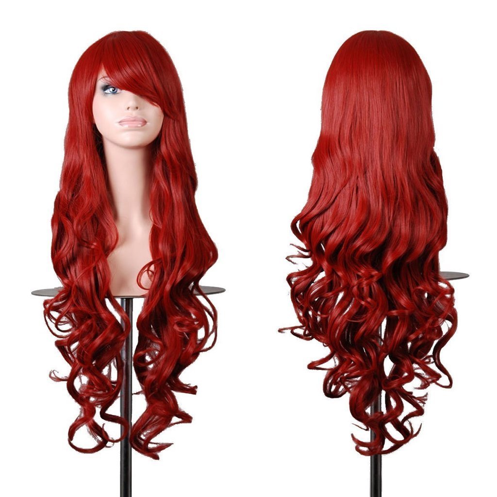 28 inch Wavy Curly Cosplay Wig With Wig Cap and Comb (32 inch, Red)