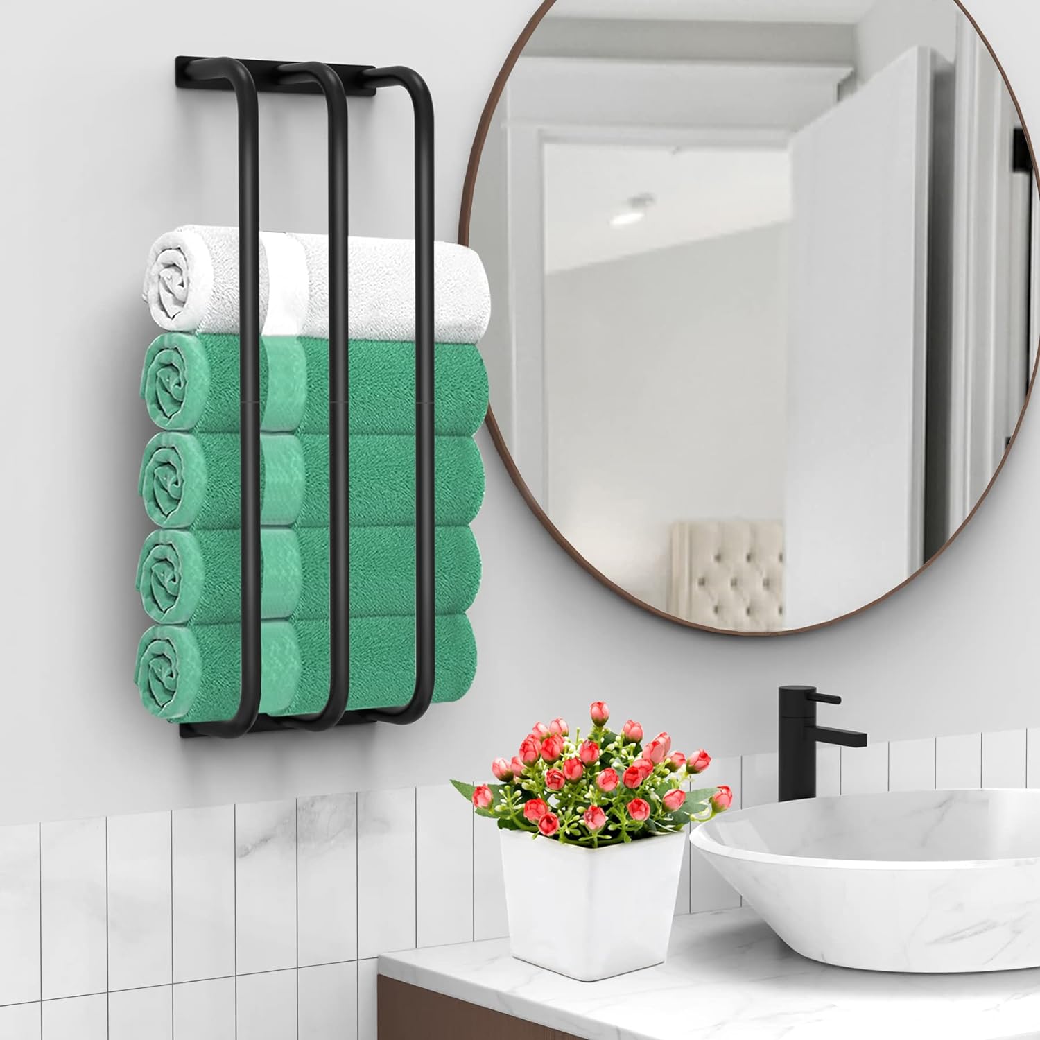 Generous towel storage: With the ability to hold up to 7 regular-sized towels or 5 extra-large bath towels, the FoverOne towel rack offers ample storage space for all family members. The wide-open design ensures easy and quick access to towels after showers.