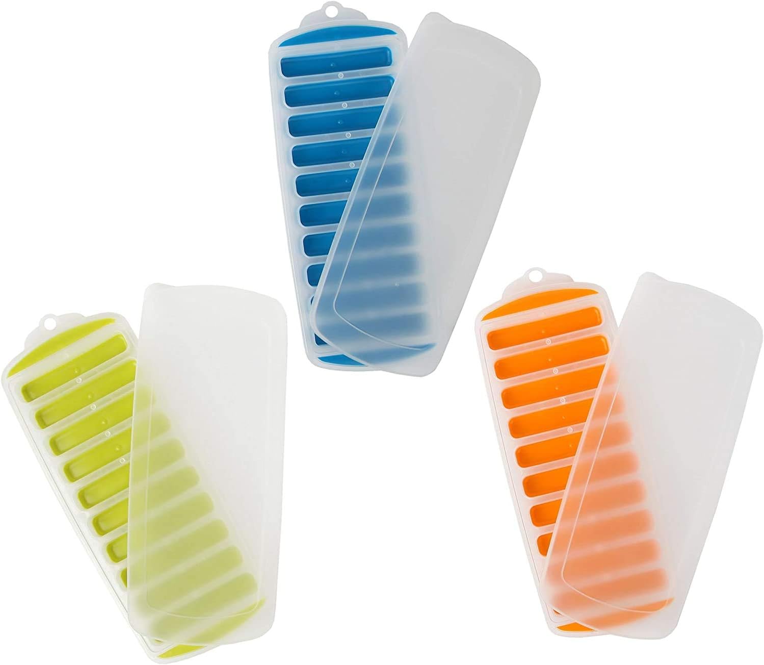 Each set includes 3 silicone trays, each with 10 slots, giving you a total of 30 perfectly shaped ice cubes for water bottles. With delightful orange, blue, and green trays, you can add juice or fruit to create water enhancers, chill your favorite drinks, make popsicles with the kids, or even use them with craft dough for a fun project.
