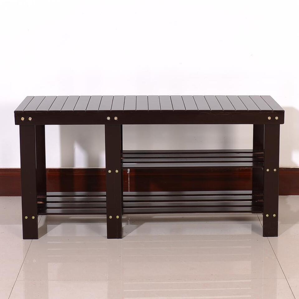 3 Tiers Entrance Doorway Accent Bamboo Shoe Organizer Bench Stool Rack Coffee