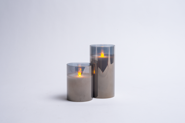 3x4 • Flameless LED Candle in Smoked Grey Glass