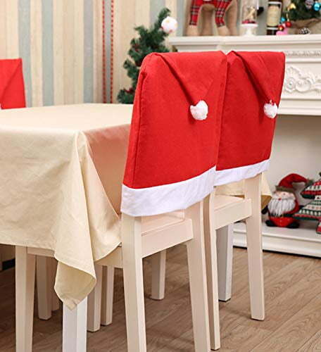4 PC Holiday Christmas Dining Chair Back Covers, Santa Hat Festive Decorations