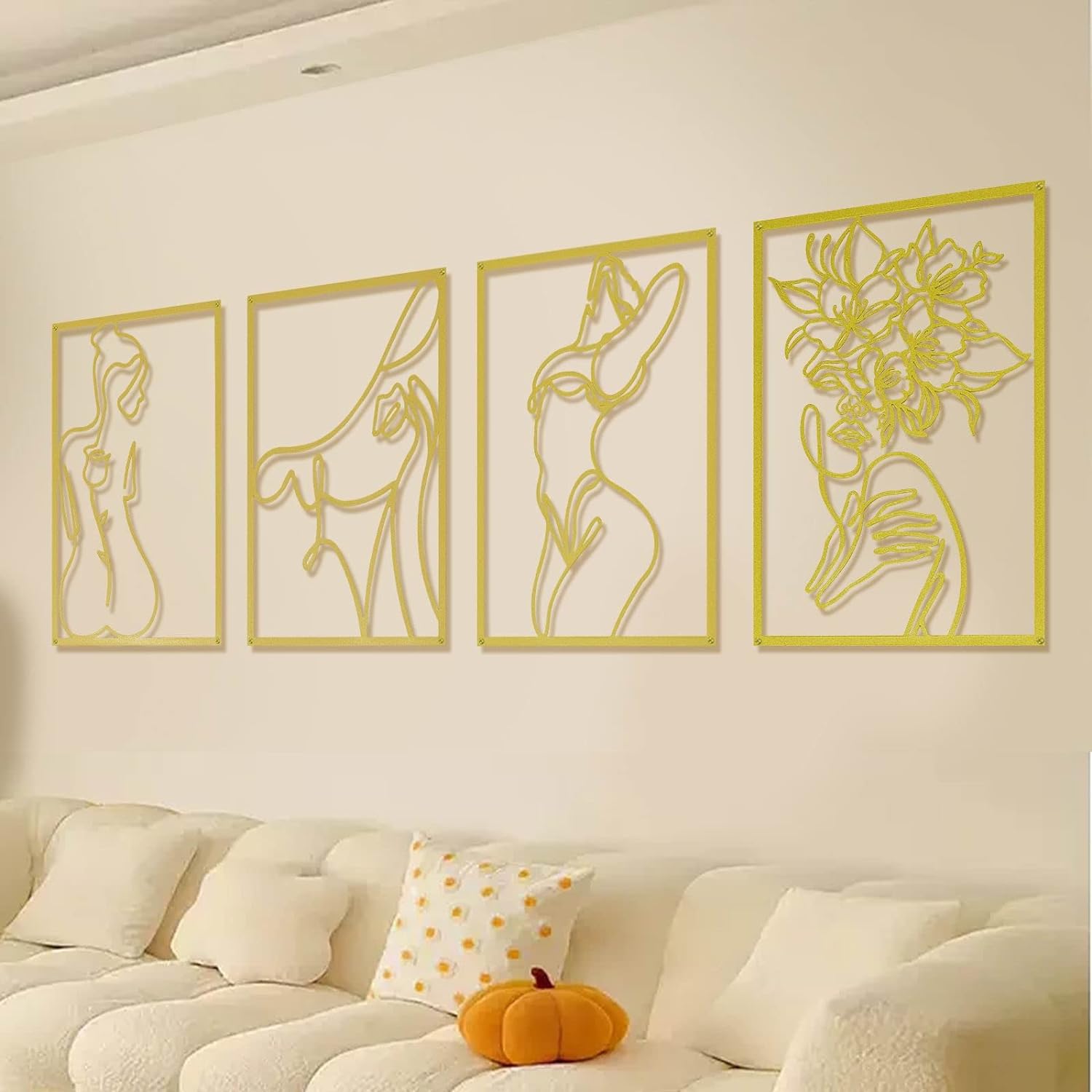4 pcs Metal Wall Art Gold Wall Decor Minimalist