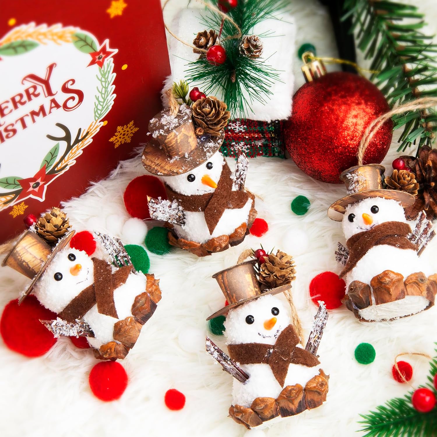 - ⛄【Handcrafted Christmas Delight】Add a touch of handmade charm to your holiday decor with these 4Pcs Christmas Snowman Ornaments. Each one is lovingly handcrafted, making them unique additions to your Christmas festivities.