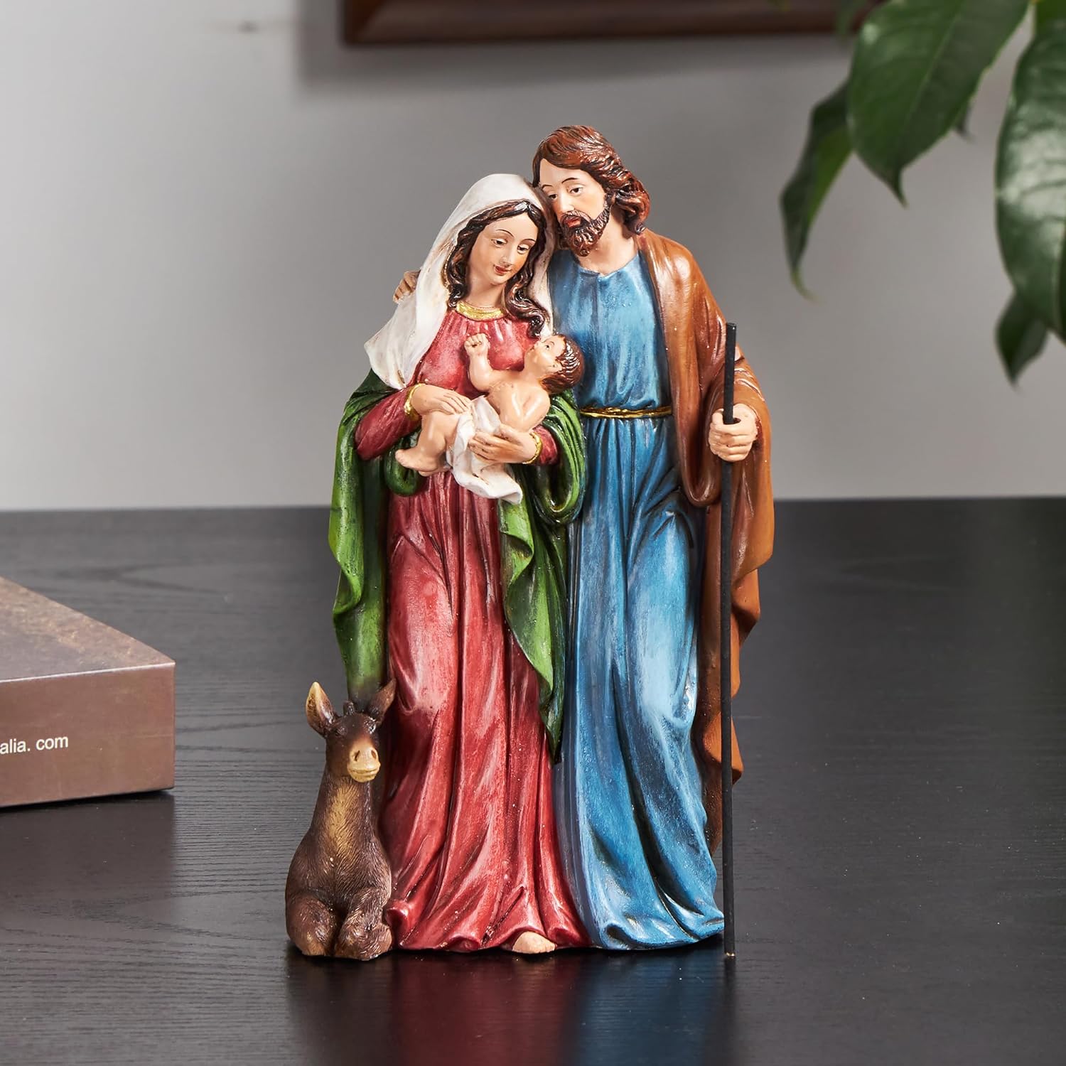 Hand-painted: Crafted with meticulous care by dedicated artisans, this Holy Family Statue comes to life through the art of hand-painting. Made from synthetic resin, the figurine harmoniously combines strength with exquisite beauty. The hand-painted details add a personalized touch, making each piece unique.