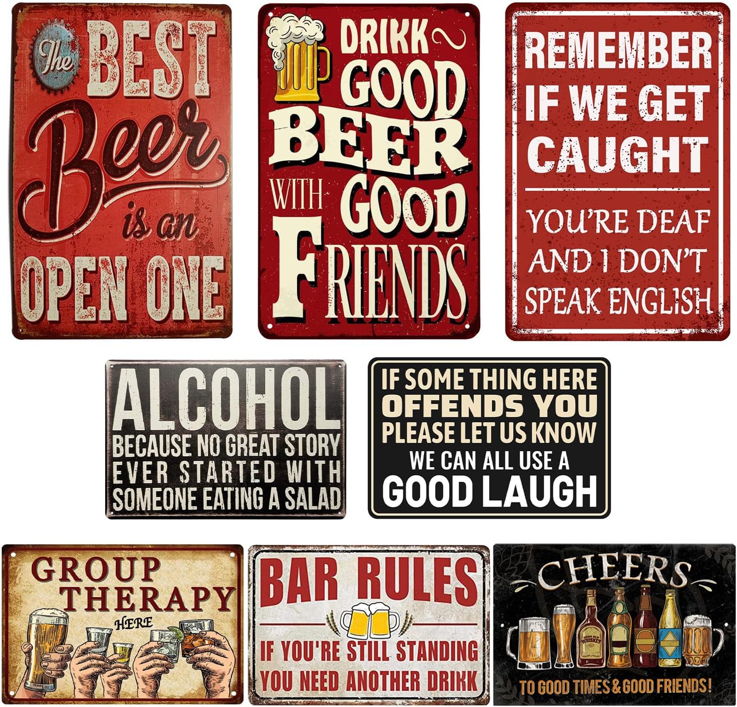 8 Pack Bar Signs Metal Sign Funny Bar Signs for Home Bar Wall for Man Cave Decor
