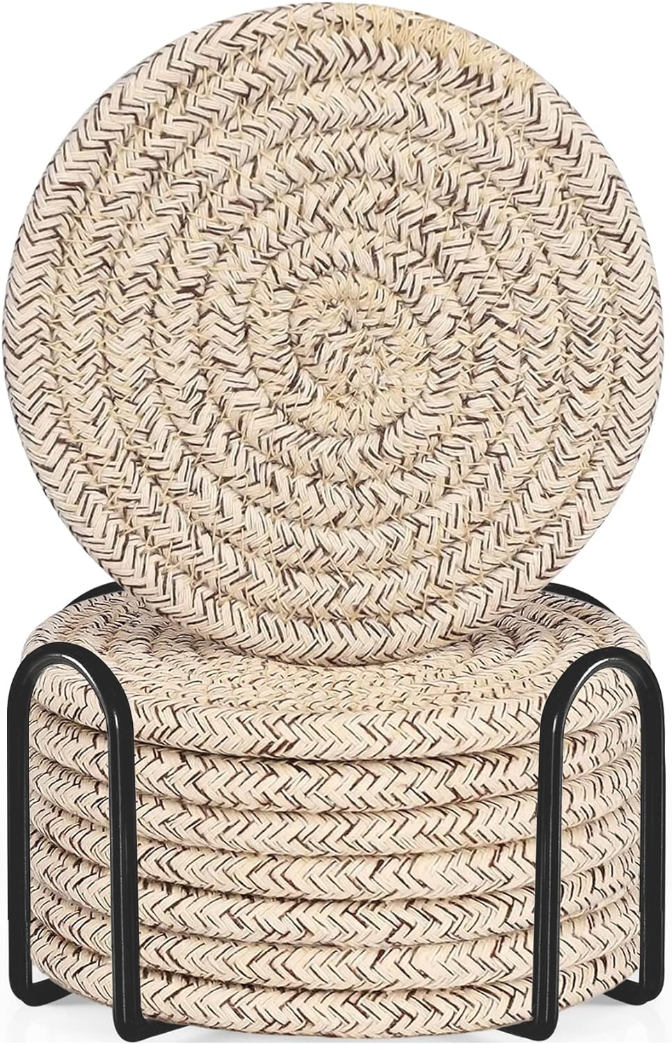 8 Pcs Drink Coasters with Holder, Cotton Woven Absorbent Coasters for Drinks