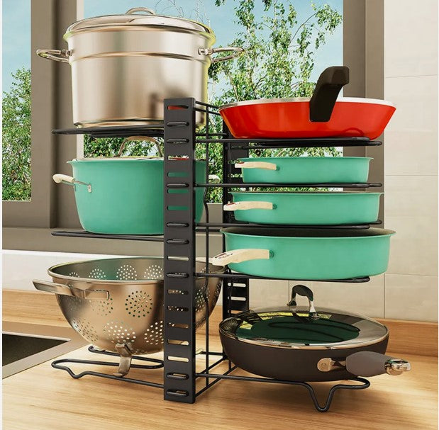 8 Tier Kitchen Pot Pan Storage Rack Organizer Cookware Shelves Holder Stand