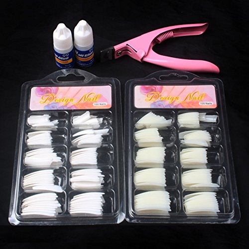 - What You Will Get: Two box of half-cover nail tips (200 Pieces in total), two glue, one nail clipper. This half-cover fake nail kit is so perfect for DIY nail art lovers and manicurists on nails salon, also it's a wonderful gift for your sister, wife, girlfriend, mother