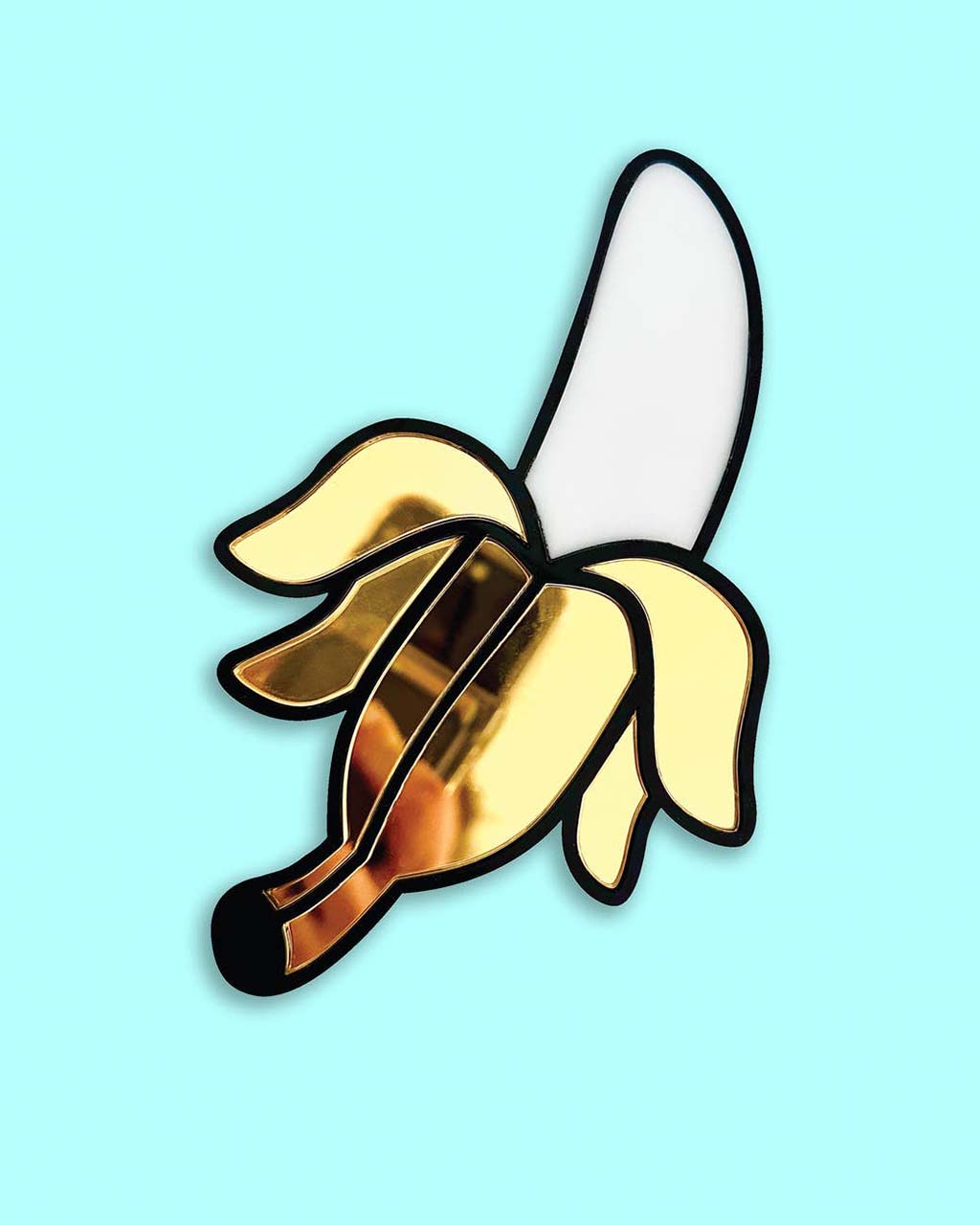 Add some flare to your wall with a banana mirror wall hanging. Each banana is laser cut with plastic acrylic. The gold mirror is also a plexiglass. Each banana has a small hook space on the back for easy hanging.