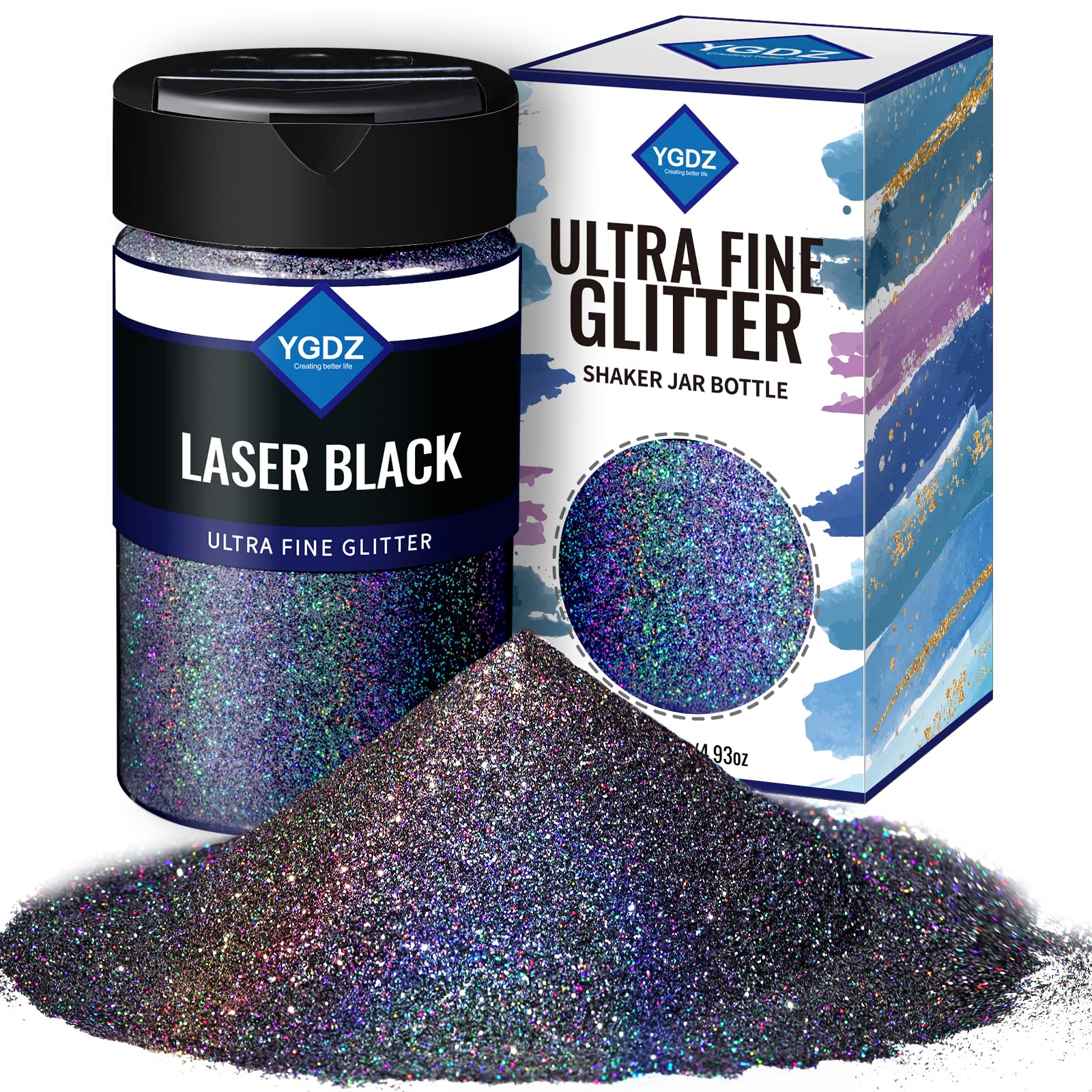 Black Glitter, YGDZ Black Fine Glitter for Crafts, Christmas Glitter 140G /4.93OZ, Festival Glitter, Body Glitter, Nail Glitter, Craft Glitter for Resin Arts Tumbler, Christmas Decor