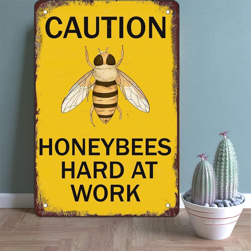 Caution Honeybees Hard At Work Metal Tin Sign, 8x12 Inches