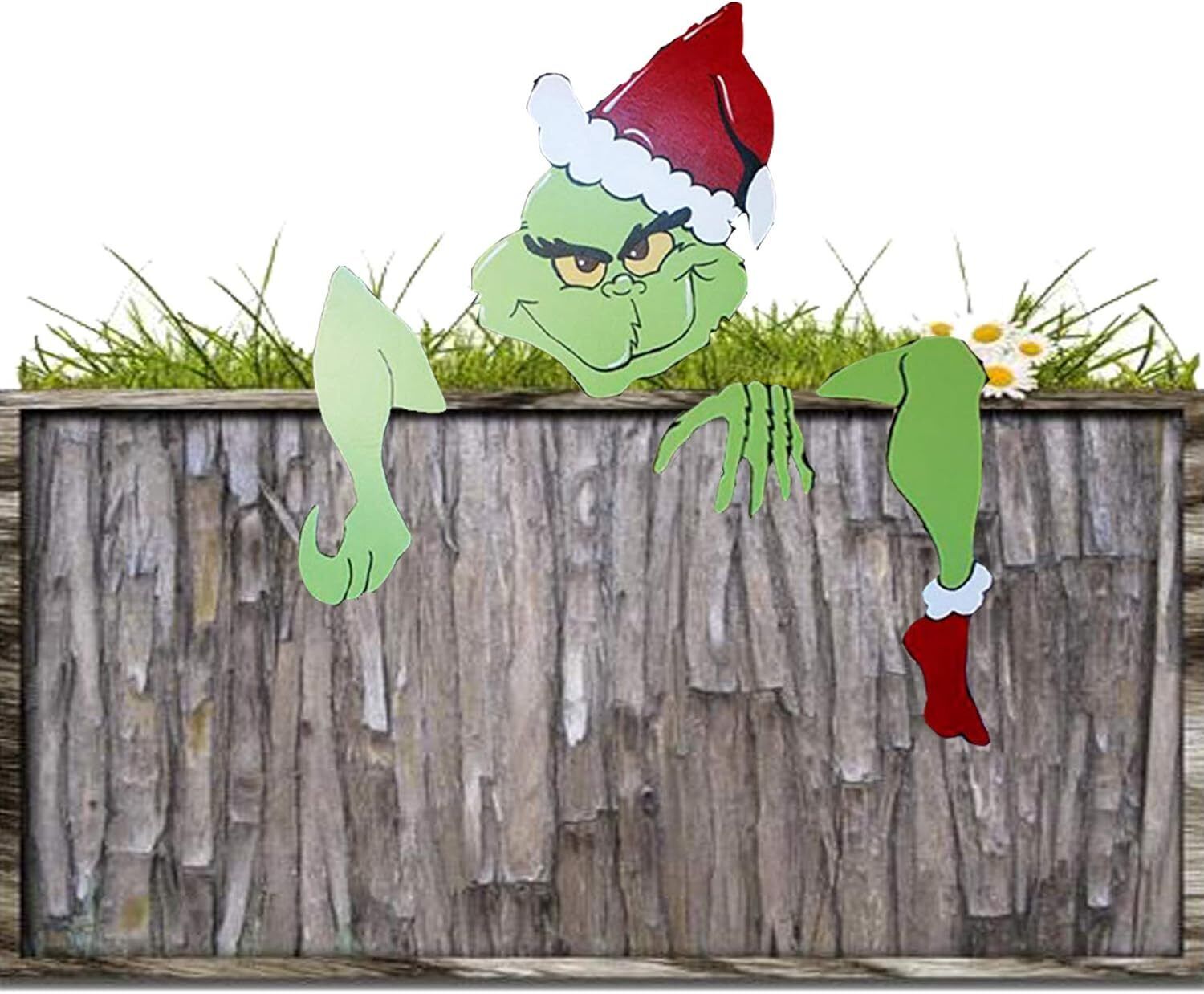 Christmas Fence Peeker Yard Garden Decoration Grinch Gift