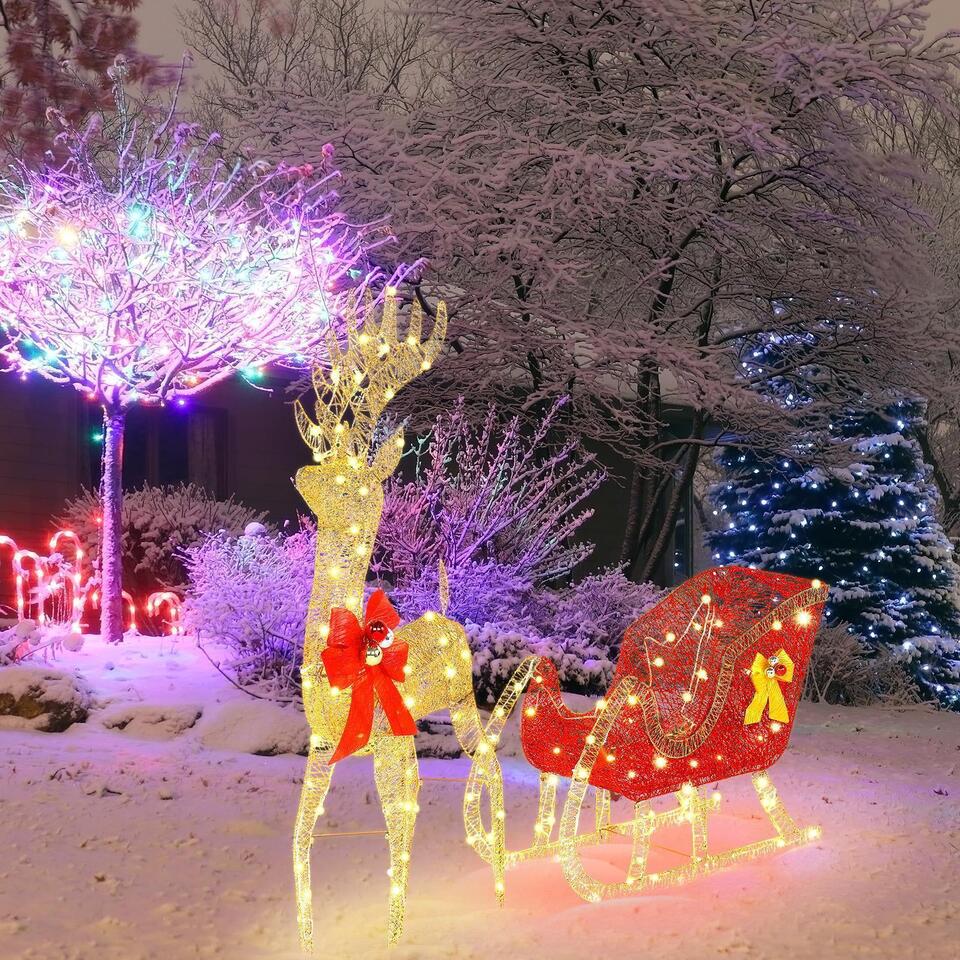 Christmas Golden Elk Deer Sled Iron Frame Cotton Thread Xmas Party Decoration