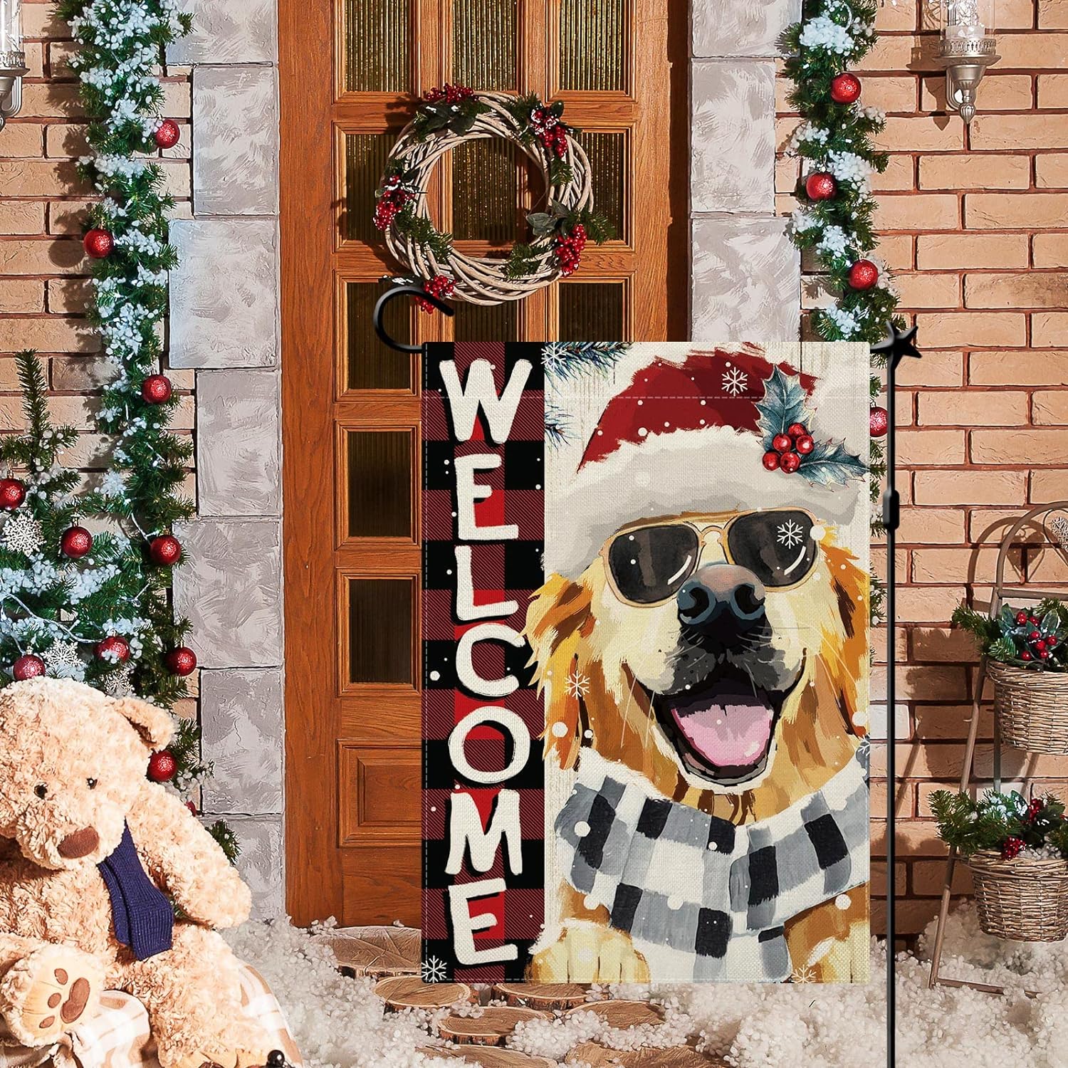 Material: Crafted from durable burlap fabric, the golden retriever flags are designed for longevity. The double stitching on multiple rows enhances durability, preventing easy ripping. The use of burlap fabric adds a rustic and natural touch to the Christmas dog flags.