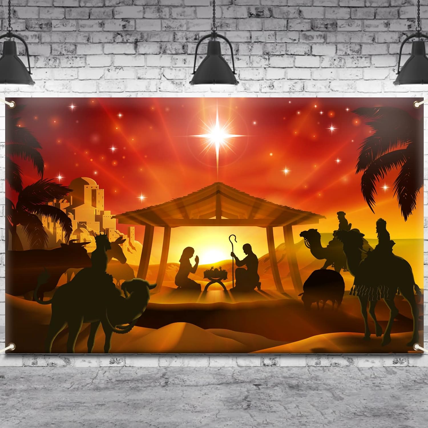 Christmas Scene Story Backdrop Banner Decorations Holy Nativity Background
