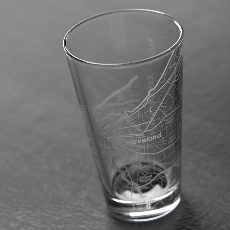 Our map drinkware and glassware collections are available for every u.S. City and town. Each pint glass is precision-etched entirely around the vessel with a beautifully detailed map of your favorite city’s streets, neighborhoods, and coordinates. The perfect gift for any occasion or addition to any home bar. Sturdy, high-quality glass made for a lifetime of use. Dishwasher-safe. Capacity – 16 oz. Weight - 0.75 lbs. Dimensions - 3.5" dia x 6" h.
