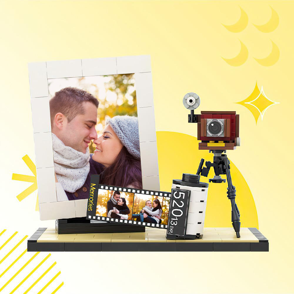 Customized building block film to store exclusive sweet photos, exquisite retro camera shape to freeze romantic moments, photos to record good times, put beauty into photo frames, building block customization memory is not discounted, photo customized building block film, you need to provide three photos, photo frame suggestions provide 3: 4 vertical high-definition photos, film recommended to provide 4:3 horizontal photos.