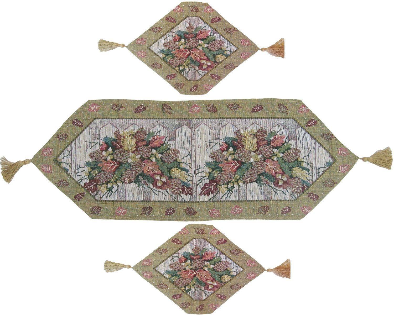 DaDa Bedding Set of 3-Pieces Table Runners - Festive Holiday Fiesta Floral Botanical Beige Woven Tapestry Dining Mats Sc