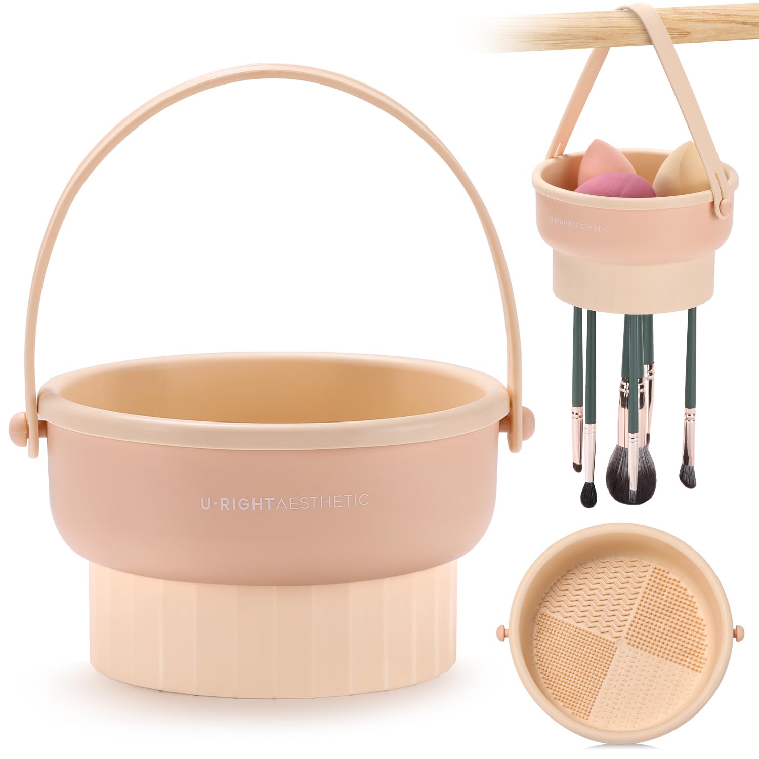 Etercycle Makeup Brush Cleaner Mat Bowl and Drying Holder - 3-in-1 Design for Thorough Cleaning and Convenient Storage (Khaki)