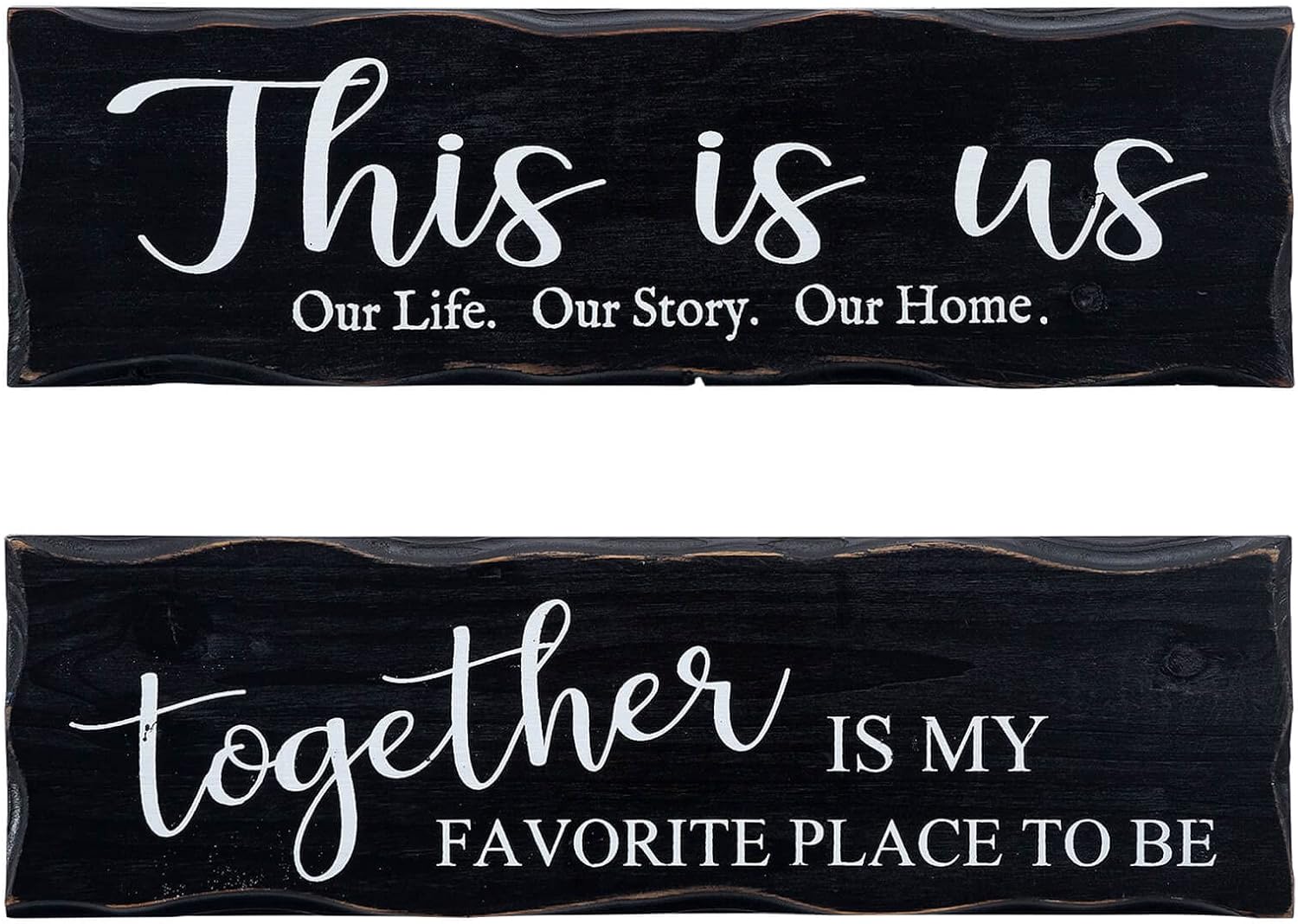 Farmhouse Rustic Wood Signs for Home Decor, his is Us and Together is My Favorite Place to Be, Black