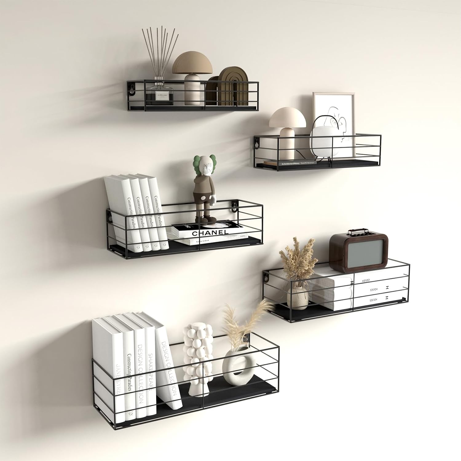 MULTIFUNCTIONAL SHELVES: With five different sizes, these floating wall shelves not only save space but also allow for versatile combinations to decorate your walls. Perfect for bathrooms, bedrooms, kitchens, living rooms, bars, cafes, corridors, and other indoor spaces.
