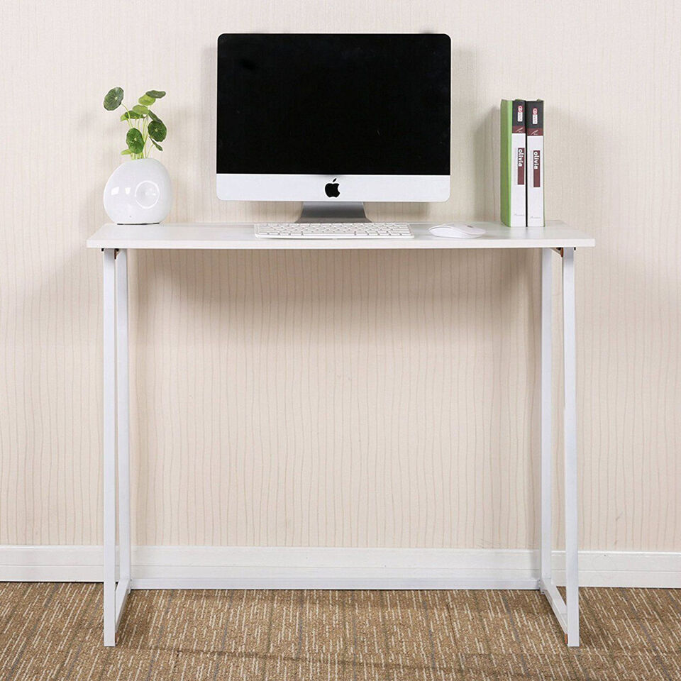 Folding Table Home Office Corner Desk Glass Top PC Laptop Table Furniture white