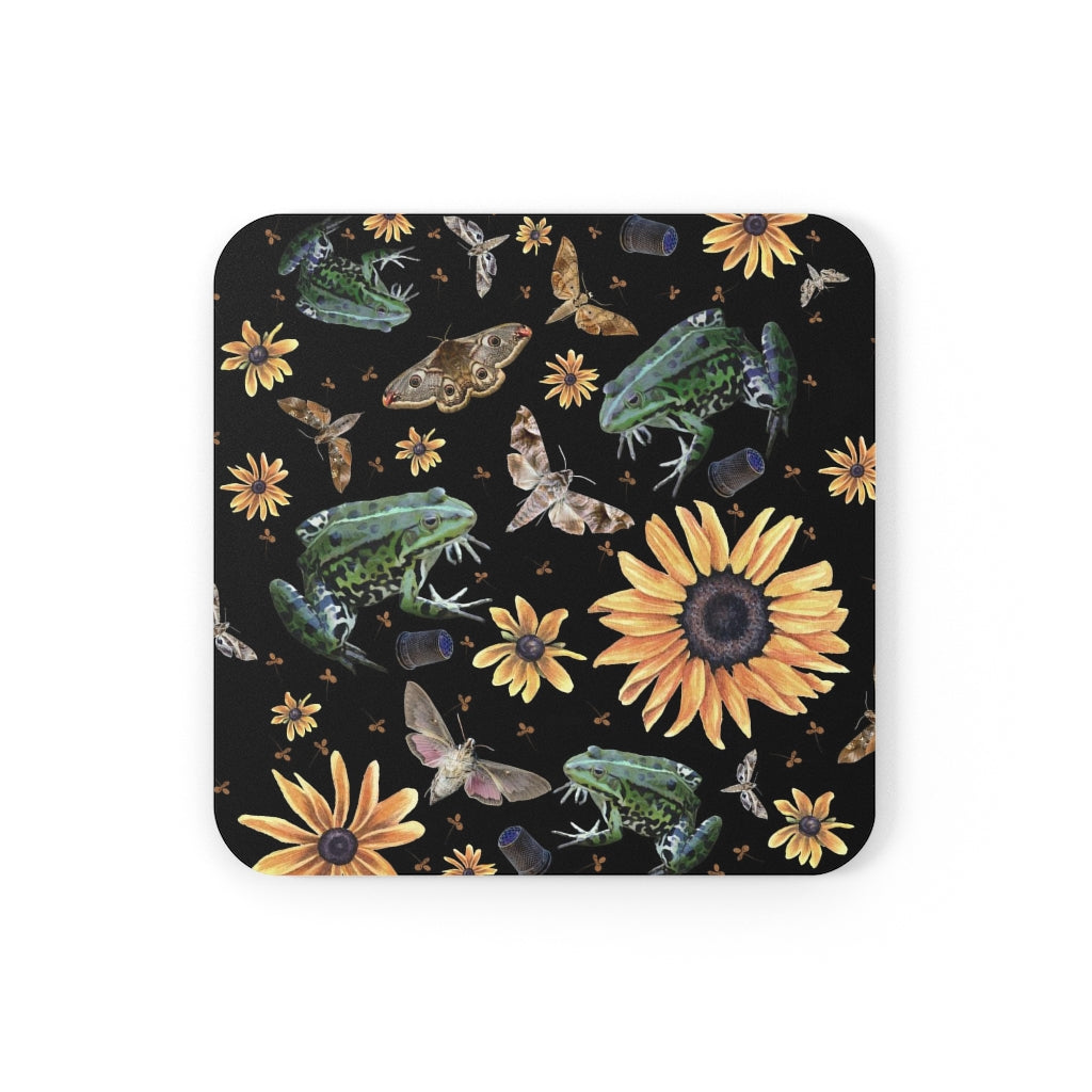Frogs and Sunflowers - Corkwood Coasters Set - Witchy Gifts