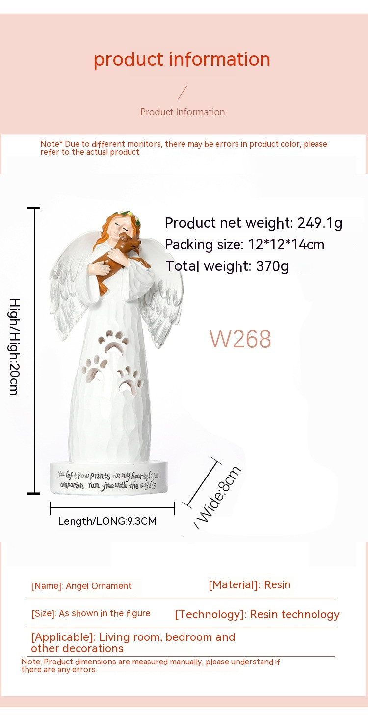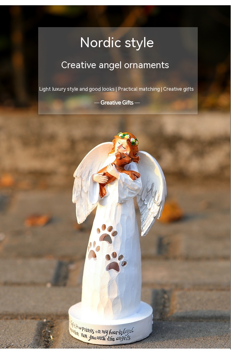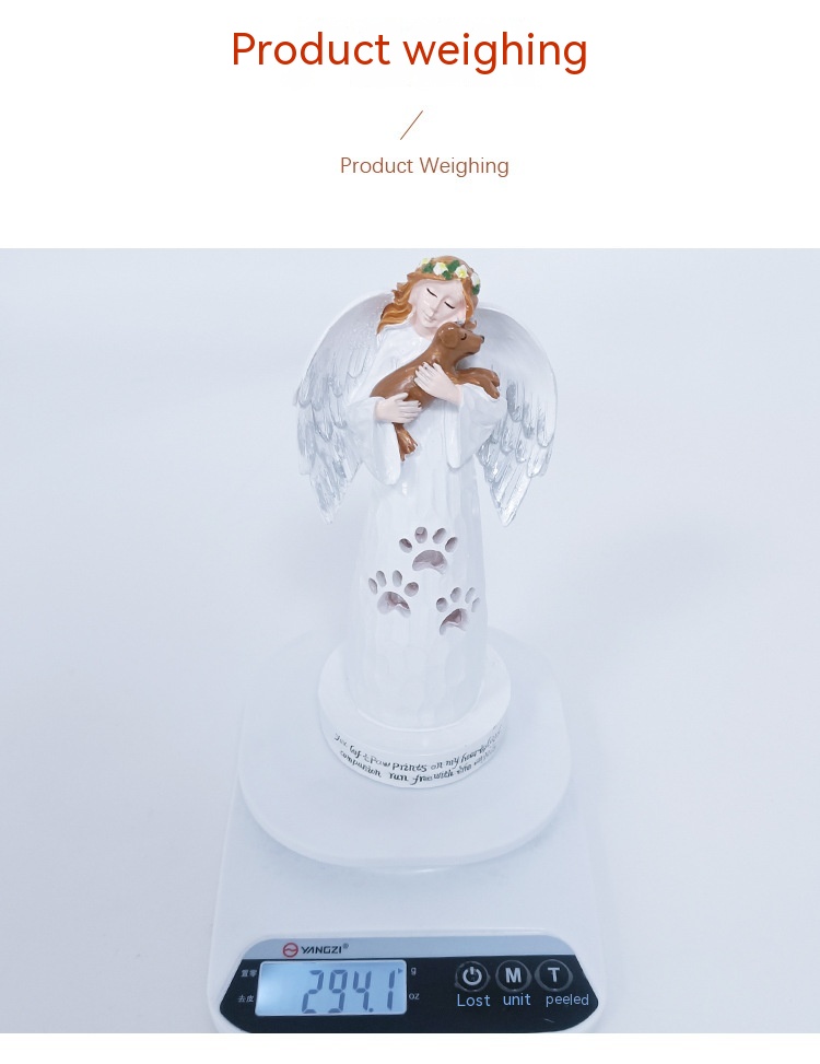 Decorate your garden with a playful touch using our Garden Decoration Outdoor Garden Country Ornaments! This European-style resin angel statue, featuring a little angel holding a dog, adds a charming accent to any outdoor space. Equipped with electric candles, it brings a warm and magical ambiance to your garden. Available in color W268.
