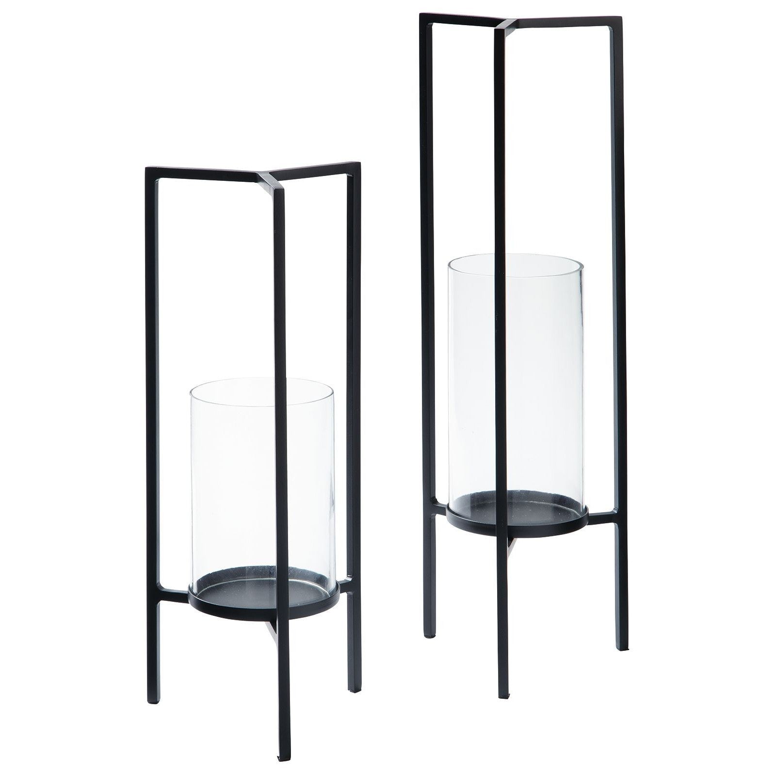 Create a romantic aura in your home with this set of candle holders. Featuring a metal frame encasing a glass hurricane, this simple accessory is the perfect choice for contemporary and rustic decors.