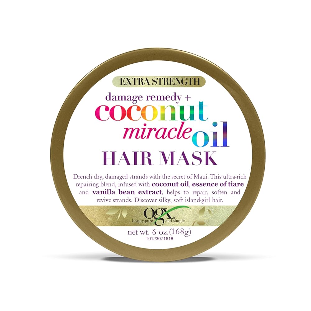 OGX Extra Strength Damage Remedy + Coconut Miracle Oil Hair Mask, Extra Hydrating & Softening Anti-Frizz Treatment to Help Repair Hair, Paraben-Free, Sulfated-Surfactants Free, 6 oz