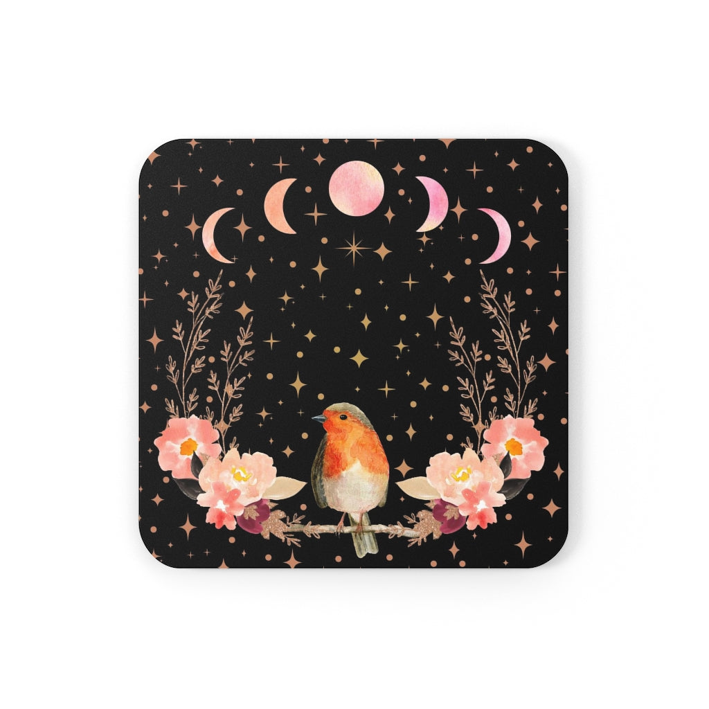 Orange Songbird - Corkwood Coasters Set - Peach Moon Phases Witchy