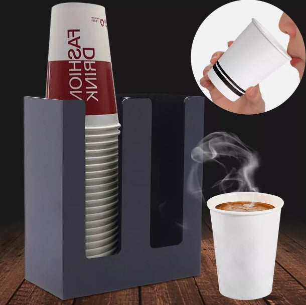 Paper Cup Dispenser 2 Compartment Black Coffee Cup and Lid Holder Storage Rack