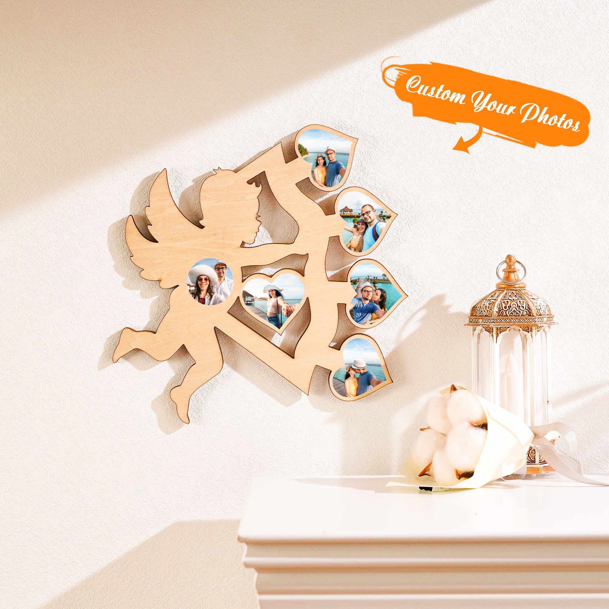 Personalized Photo Wooden Cupid Arrow Frame Charm Decoration