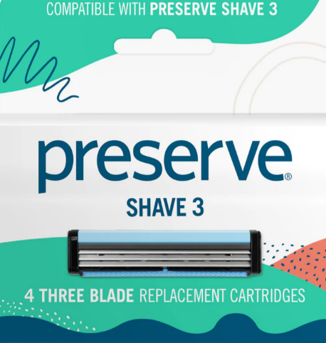 These replacement blades for the Preserve Shave 3 and Preserve Triple Razor flex and pivot to prevent nicks and cuts and provide a smooth, close shave for men and women alike. Titanium-covered blades feature a Vitamin E and aloe lubrication strip for added comfort, and are easy to remove and replace. No animal testing.