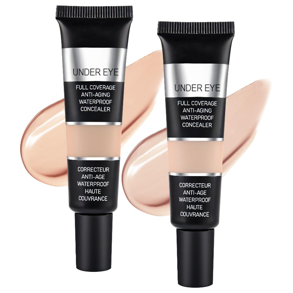 Pro Under Eye Full Coverage Liquid Concealer to Cover Dark Circles, Scars,Redness,Spots,Fine Lines,Corrector Anti-Aging Natural Finish, Moistening Smooth Cream,Waterproof 0.4 * 2 fl oz-Beige+Nude