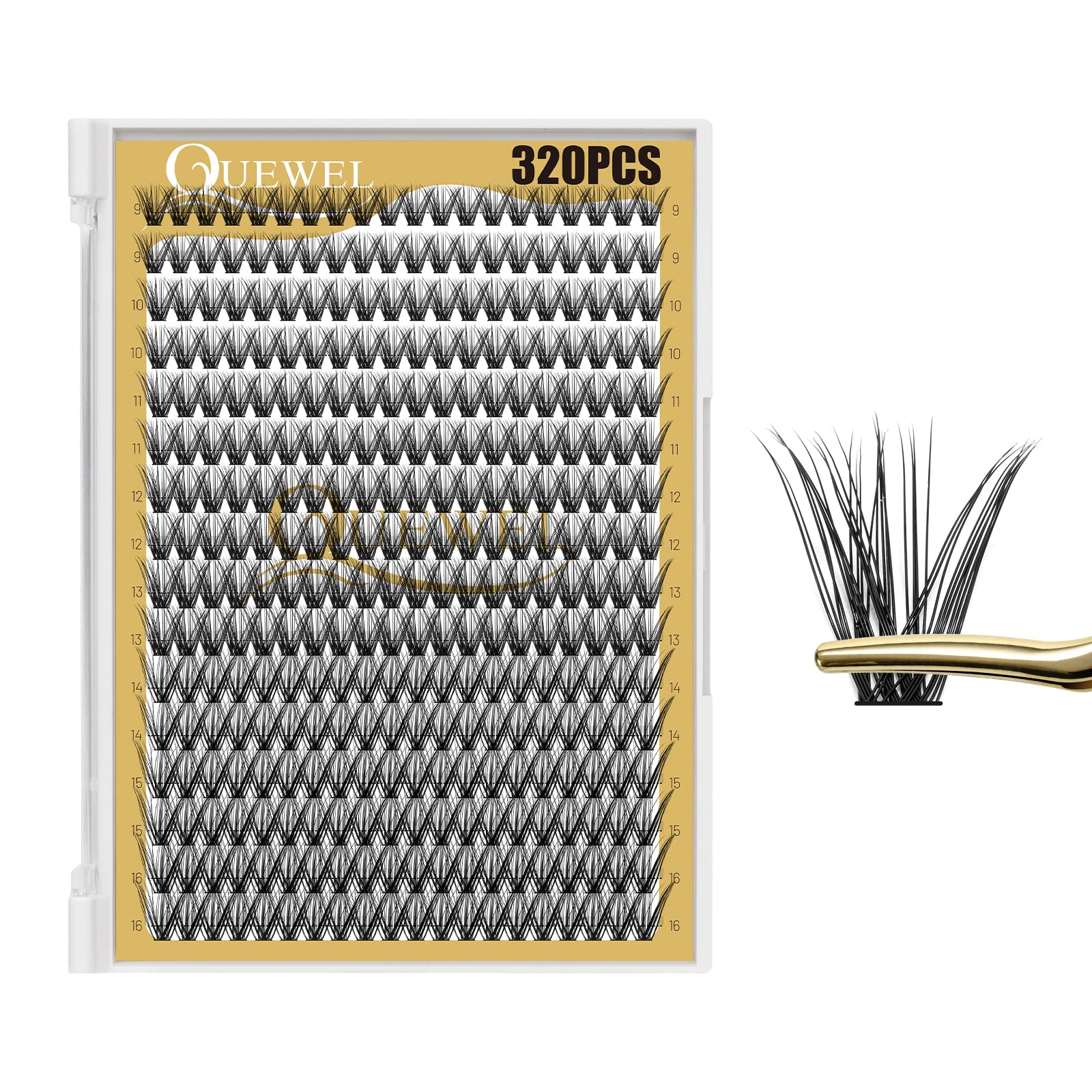 QUEWEL Lash Clusters 320Pcs Cluster Lashes 40D D Curl Lash Clusters Mix9-16mm Individual Eyelashes Clusters Wispy DIY Eyelash Extension Thin Band Soft to Use at Home (40D D Mix9-16)