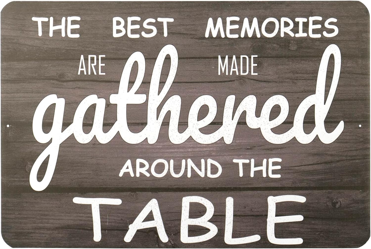 Retro Tin Sign The Best Memories Are Made Gathered Around The Table Wall Quotes Sayings, 12 x 8 inches
