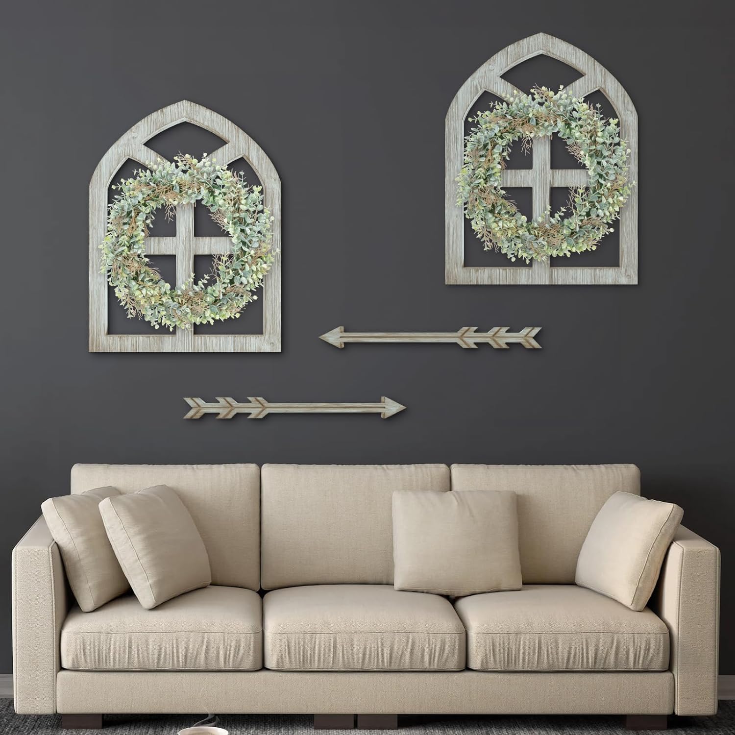 Perfect Size: The rustic wall window frames measure approximately 12 x 16 inches, artificial leaf wreaths have a diameter of approximately 11 inches, and arrows are approximately 12 inches long. Please allow for slight size variations due to manual measurement of the country window frames.