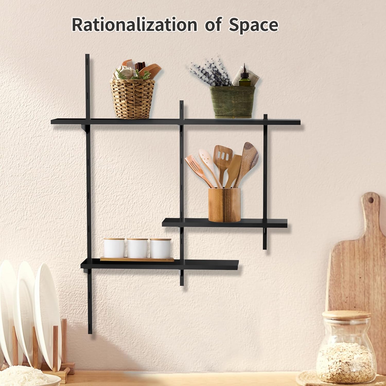 Rustic Wooden Floating Shelf with Adjustable Design for Flexible Layout and Home Decor,35x31x5 inches (Black)