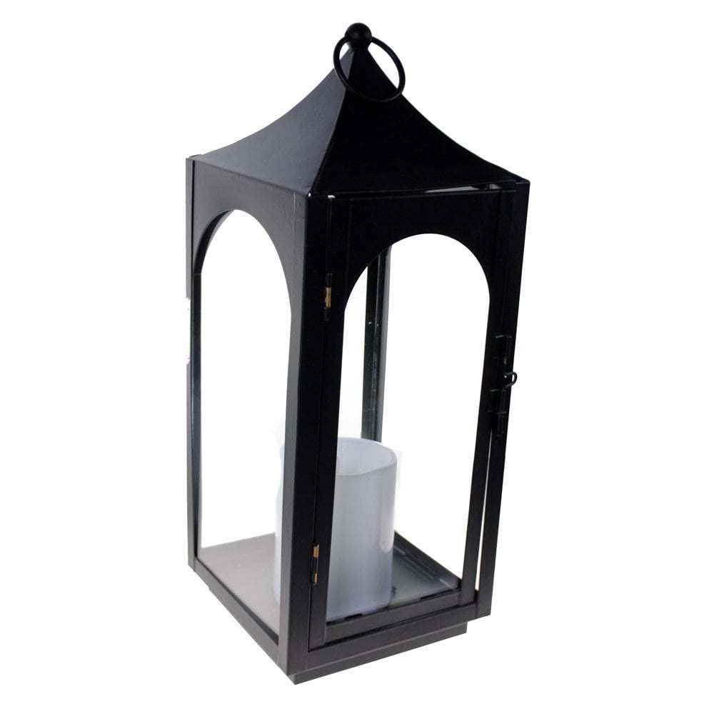 S4O 12" Metal Hanging Lantern with Glass + LED Candle Table Home Festival Decor / Black
