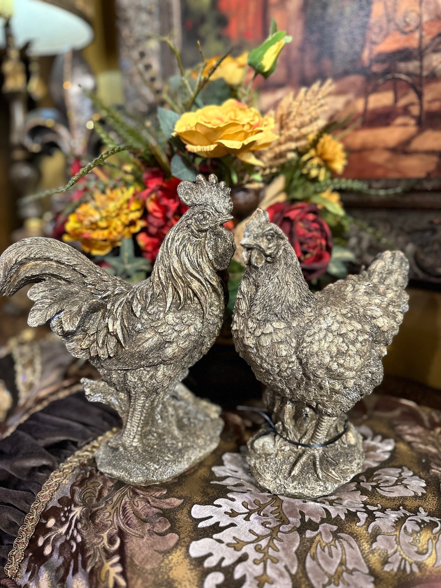 This set of 2 Rooster and Hen set is the perfect addition to your Old World or Farmhouse decor! They are finished in a soft bronze color.