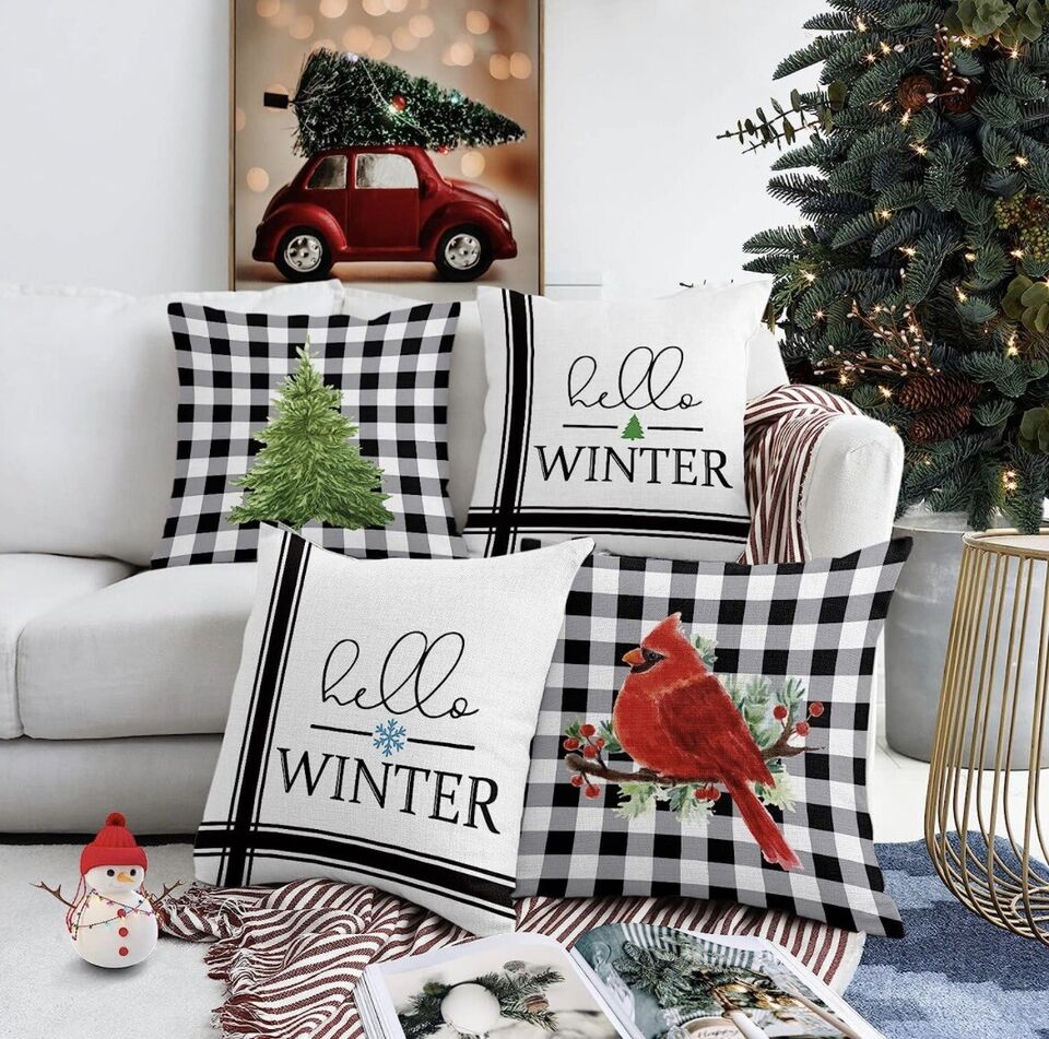 Set of 4 Christmas Holiday Throw Pillow Covers Decor 17"x17"