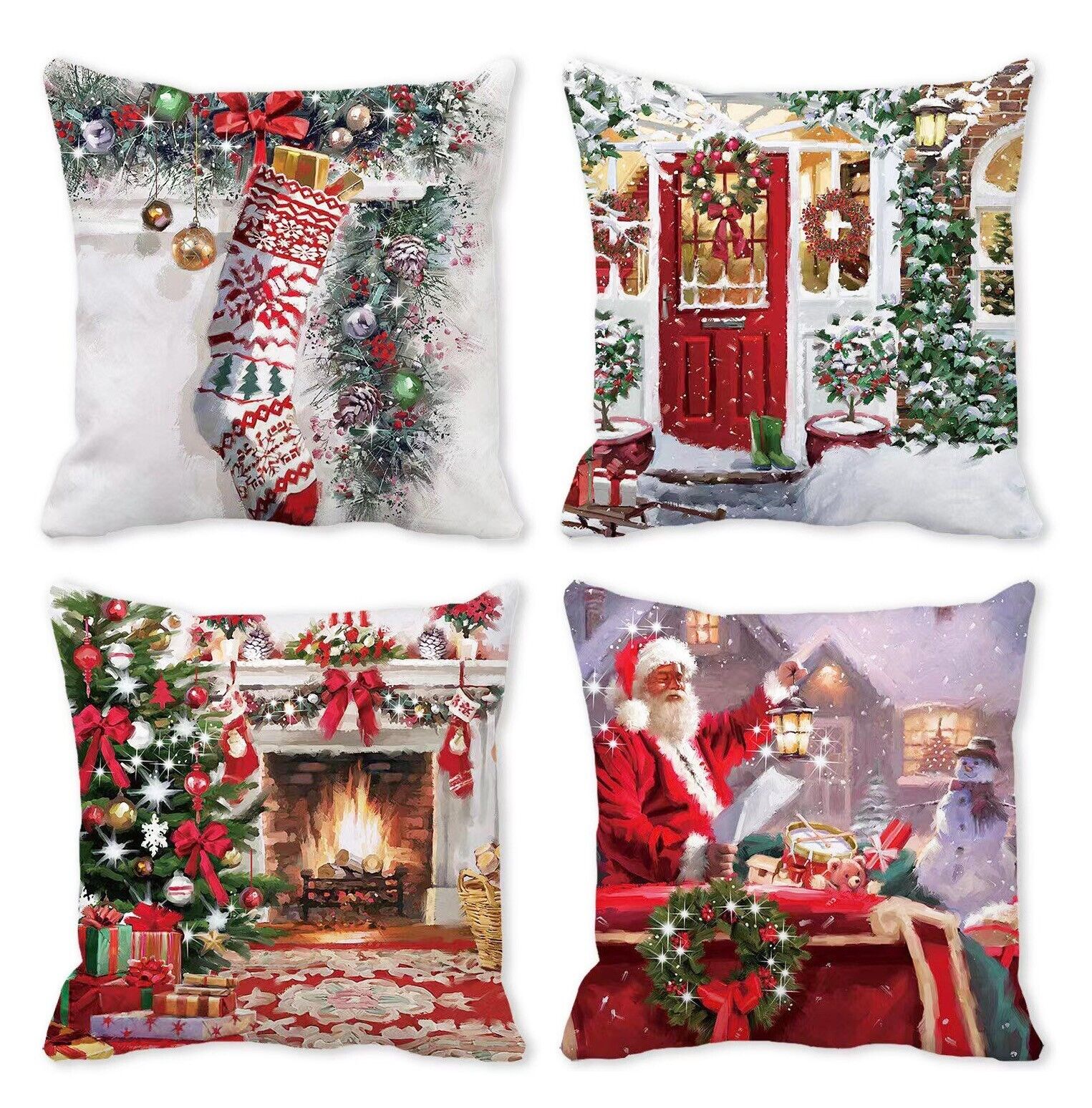 Set of 4 Christmas Holliday Decorations Pillow Covers 18''x18''